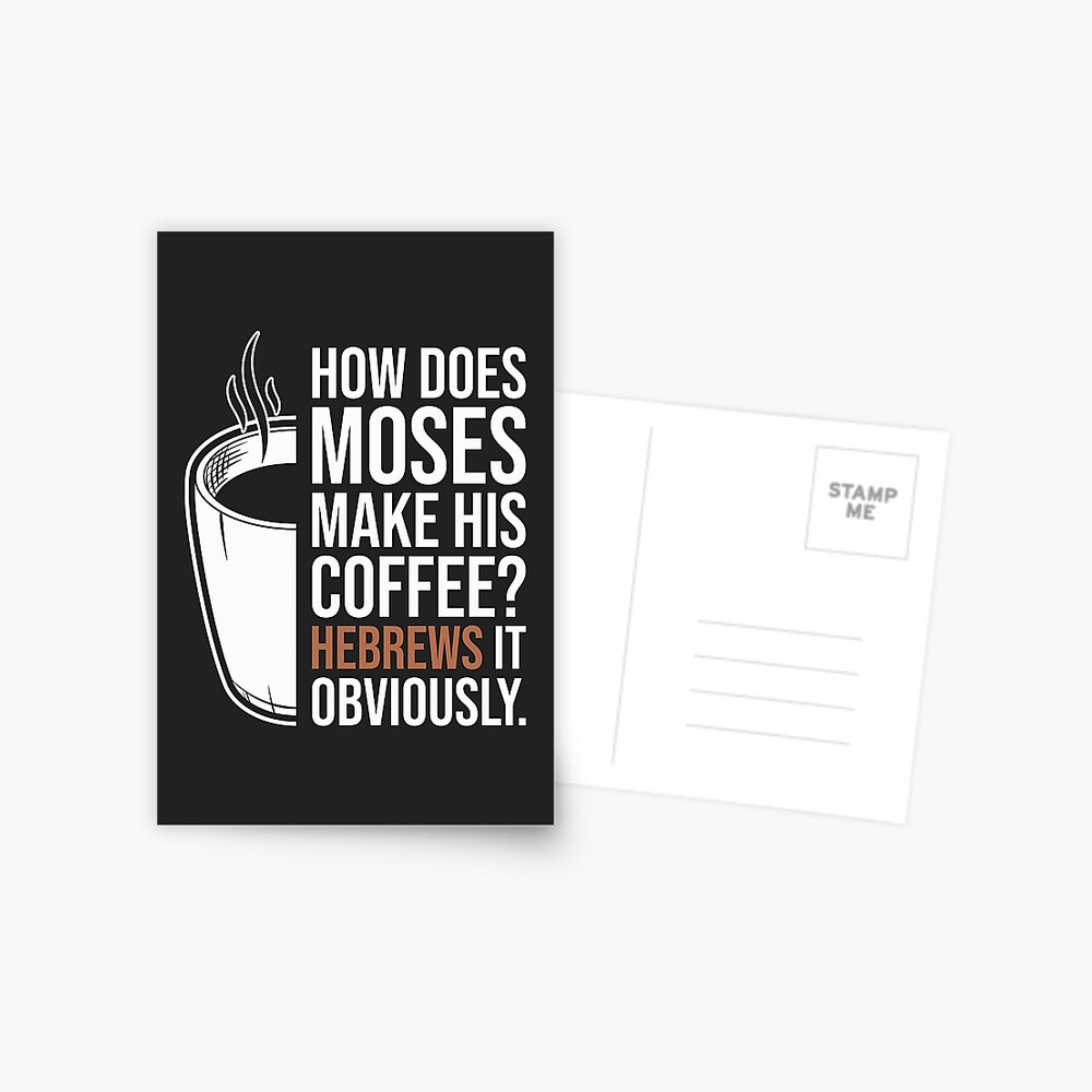 Amazon Com How Does Moses Make Coffee Hebrews It Bible Humor And Jokes Clothing Shoes Jewelry